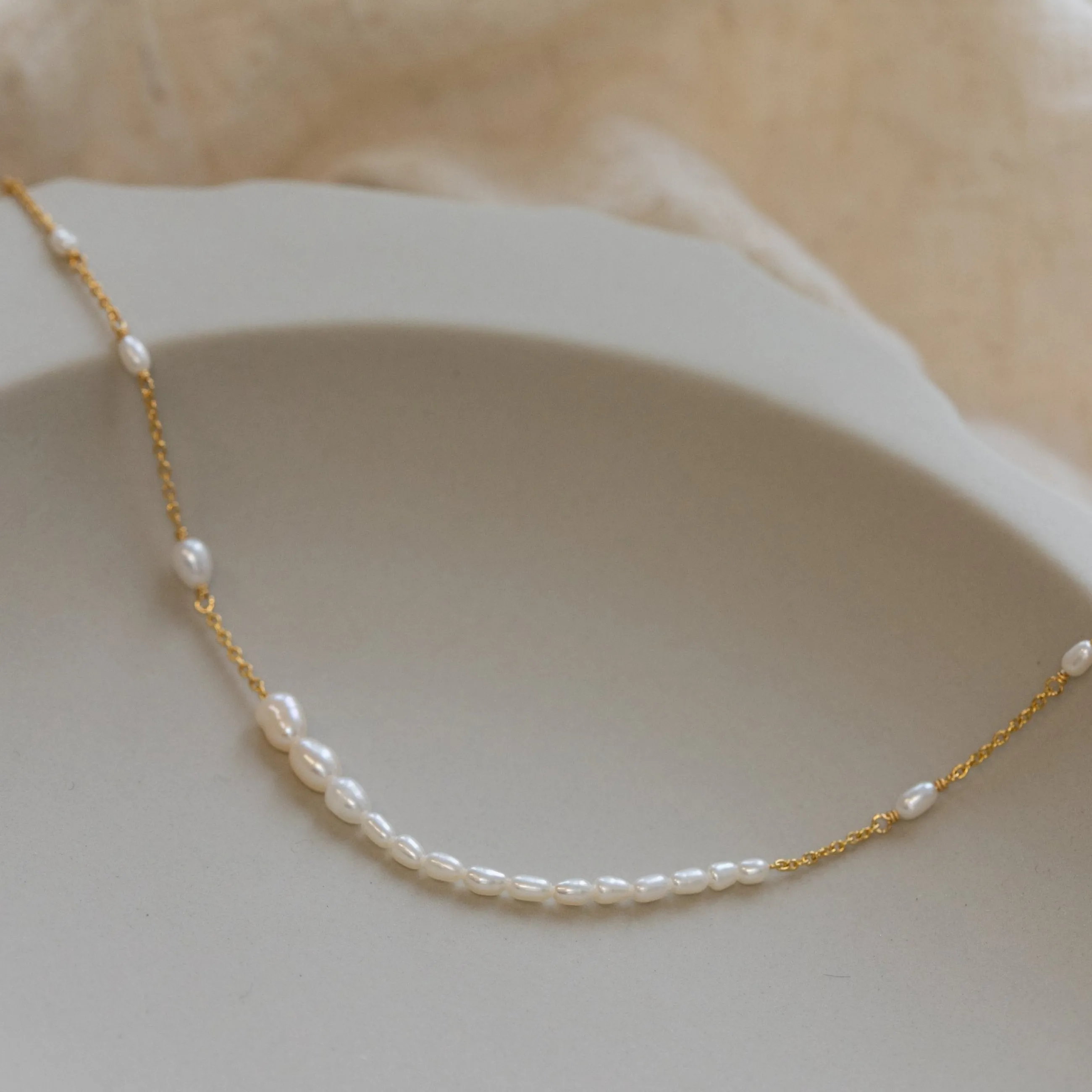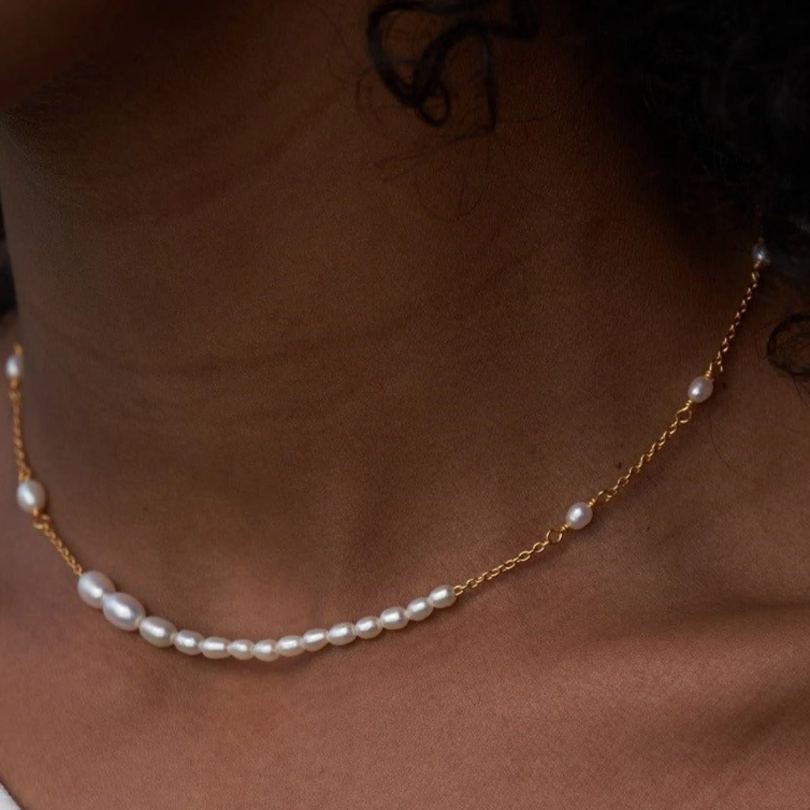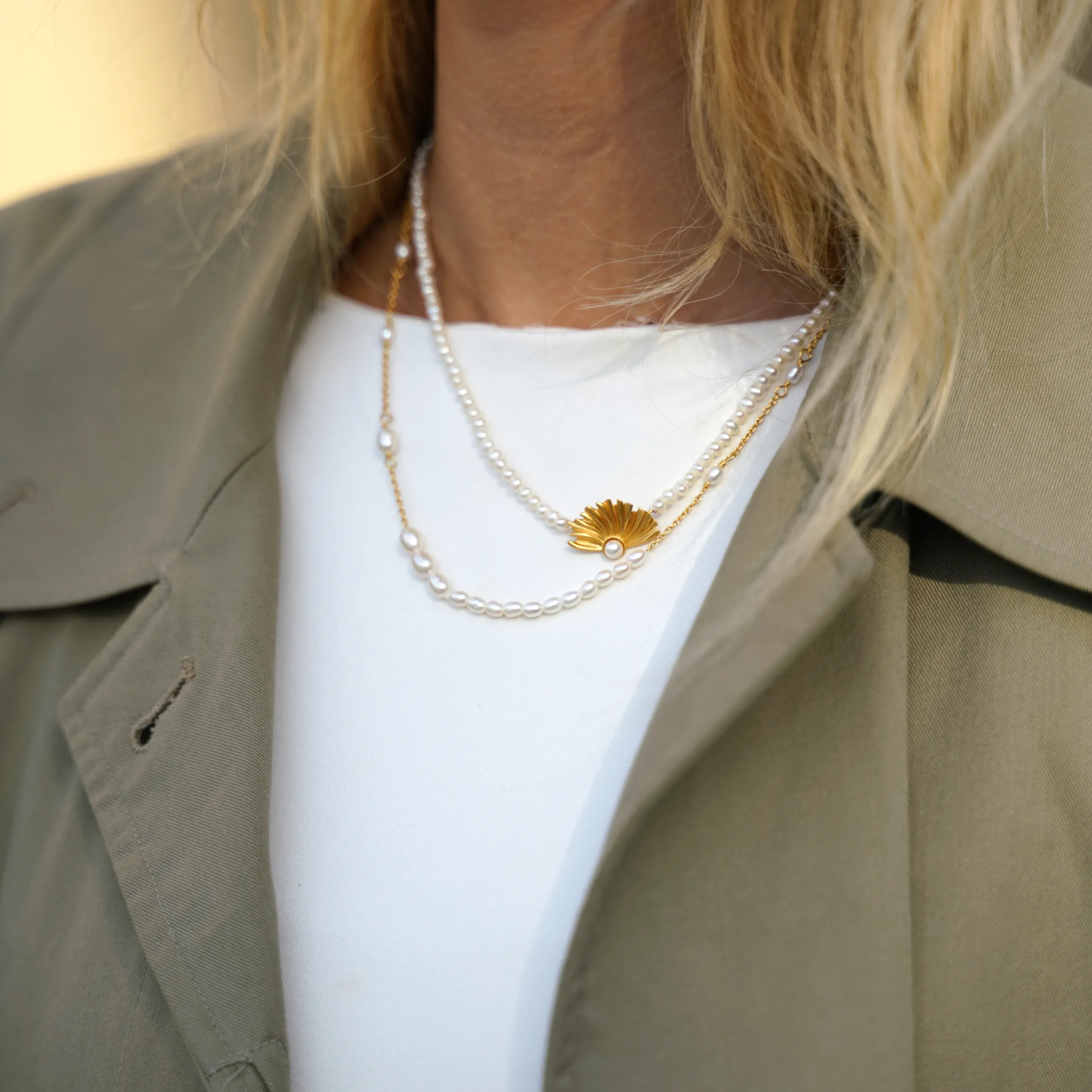 Aura Flow Halskæden består af en smuk tynd guldbelagt kæde, med de fineste ferskvandsperler i varierende størrelser. De smukke ferskvandsperler på det guldbelagte sterling sølv, giver det et legende og stilrent udtryk. Aura Flow er det perfekte alternativ til den traditionelle perlekæde.