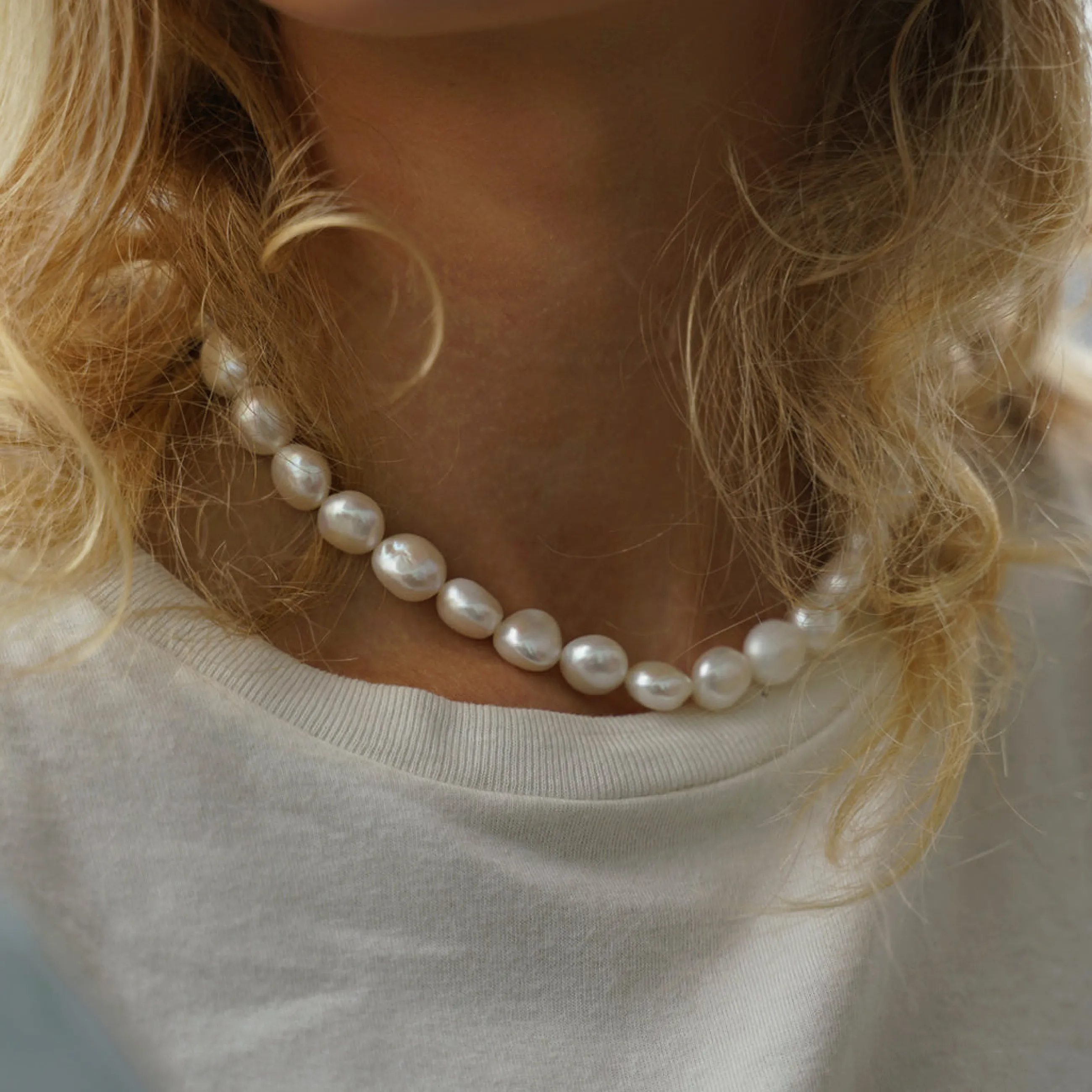 Aura Grande halskæden er lavet af store ferskvandsperler, som hver især er unikke og smukke. Det gør, at hver enkelt Aura Grande halskæde har et helt unikt og enestående look.