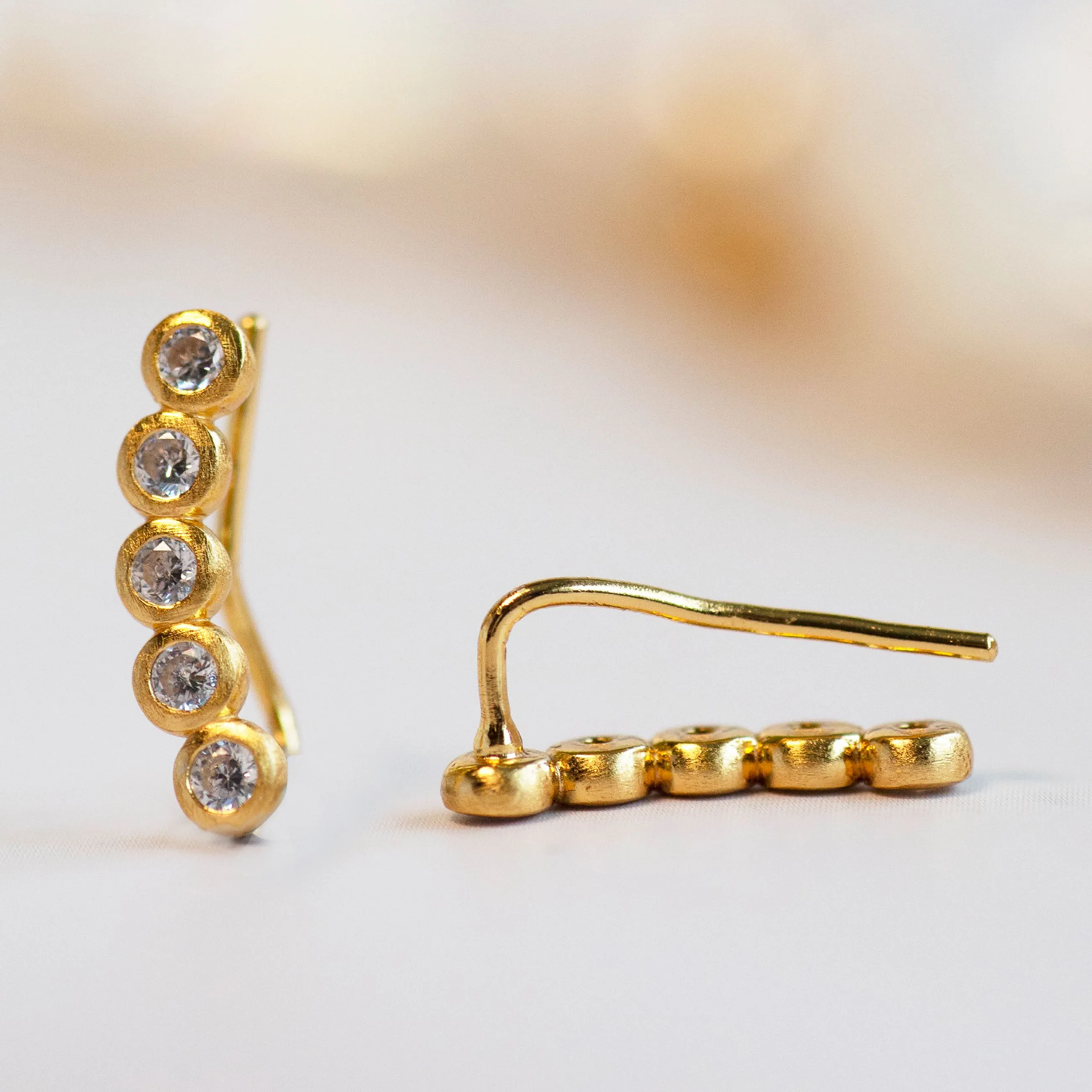 Materiale14K forgyldt sterling sølv med ZirkoniaStørrelseLængde: 15 mmBredde: 3,3 mmSten: 2 mm