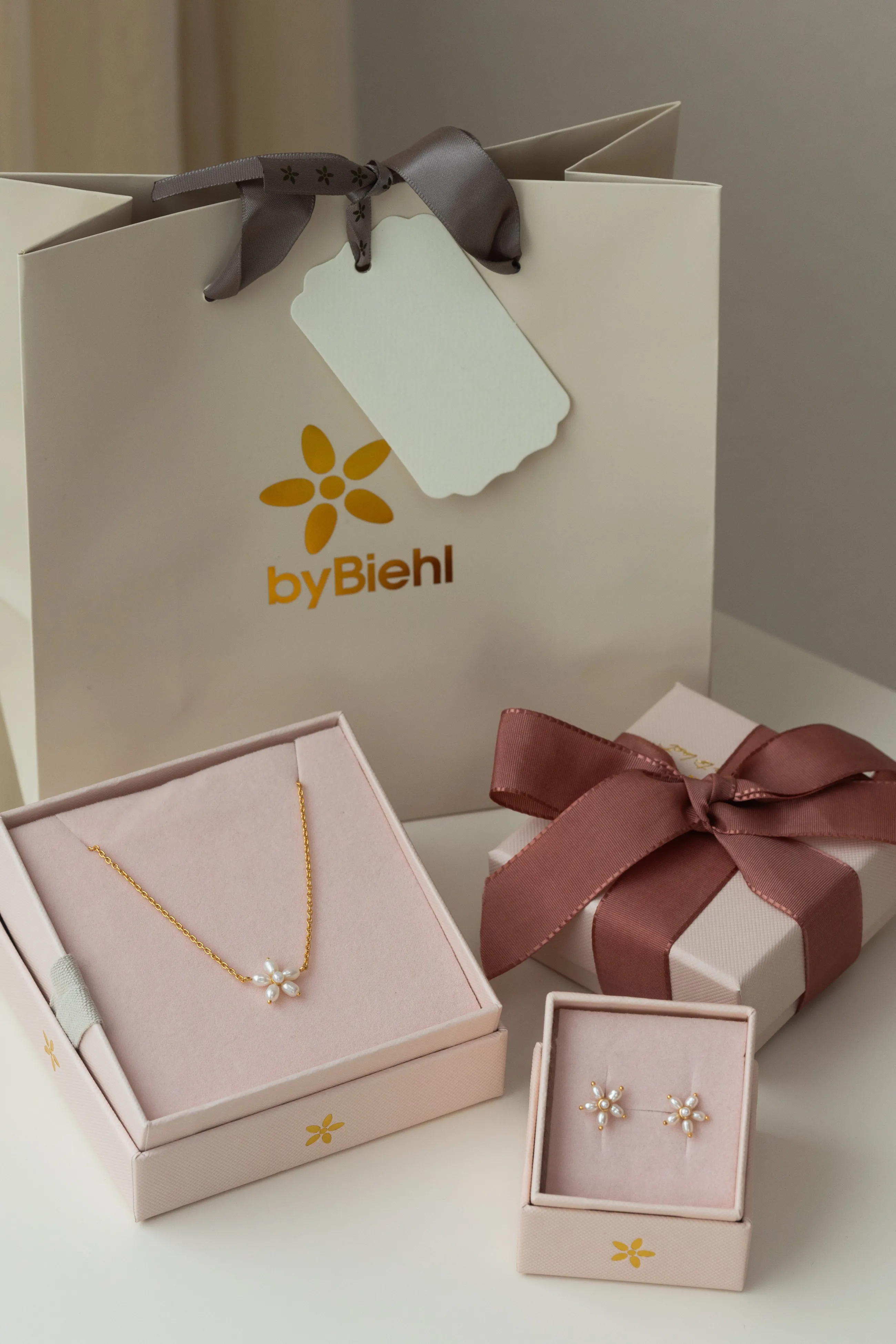 Denne bundle inkluderer 4 vare:Pearl Signature halskædePearl Signature StudbyBiehl GaveposeTil/Fra kortStørrelseStuds:…