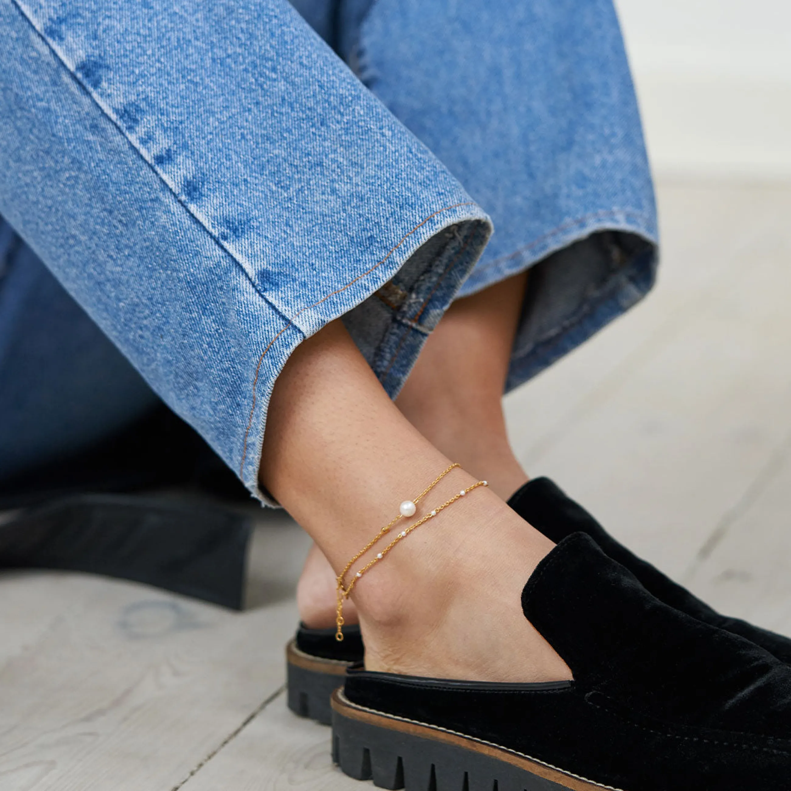 Shop hele .Kan bruges som ankelkæde med en . Materiale14K forgyldt sterling sølv med ferskvandsperlerStørrelseLæng…