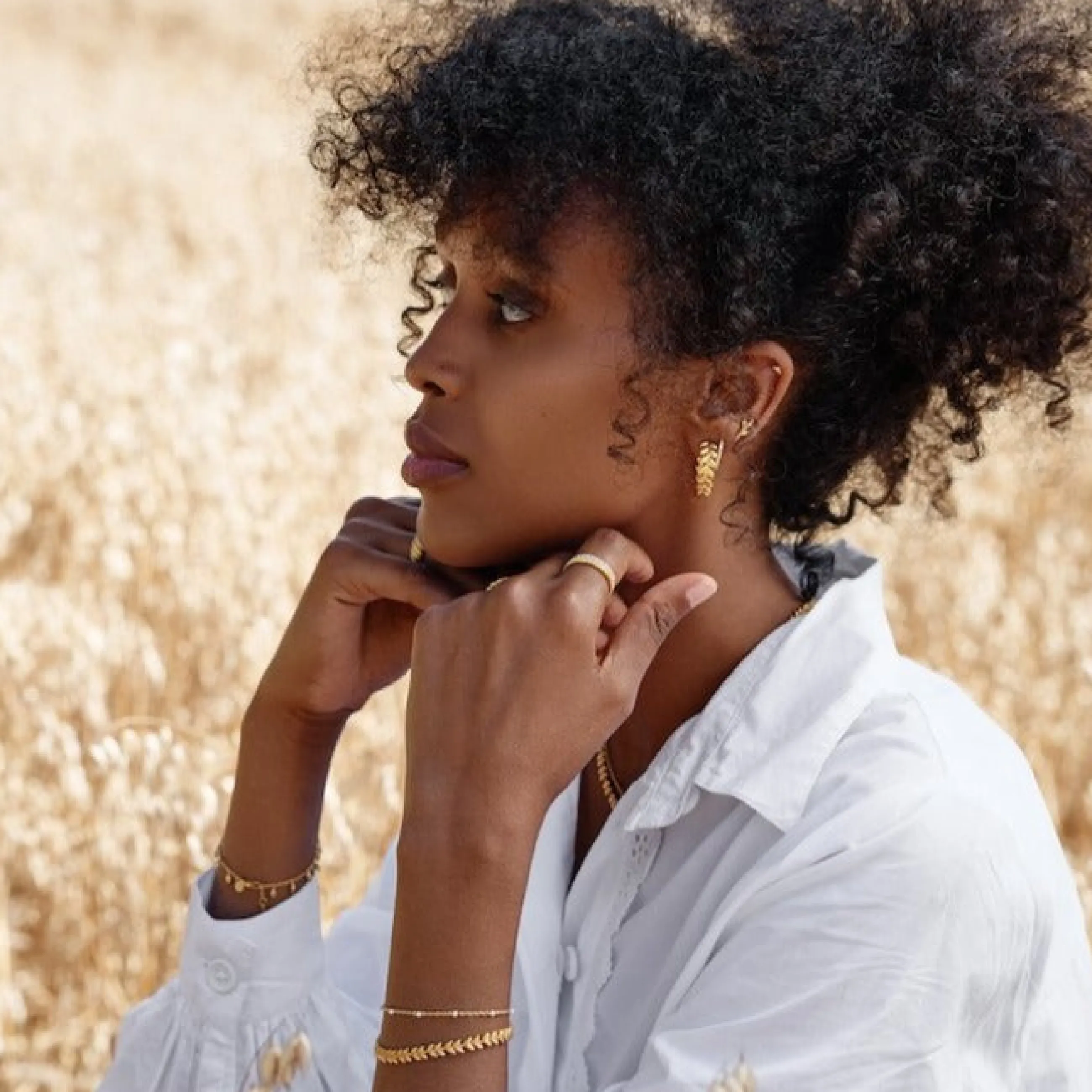 Materiale14k forgyldt sterling sølvStørrelseLængde på armbånd: 19,5 cm.