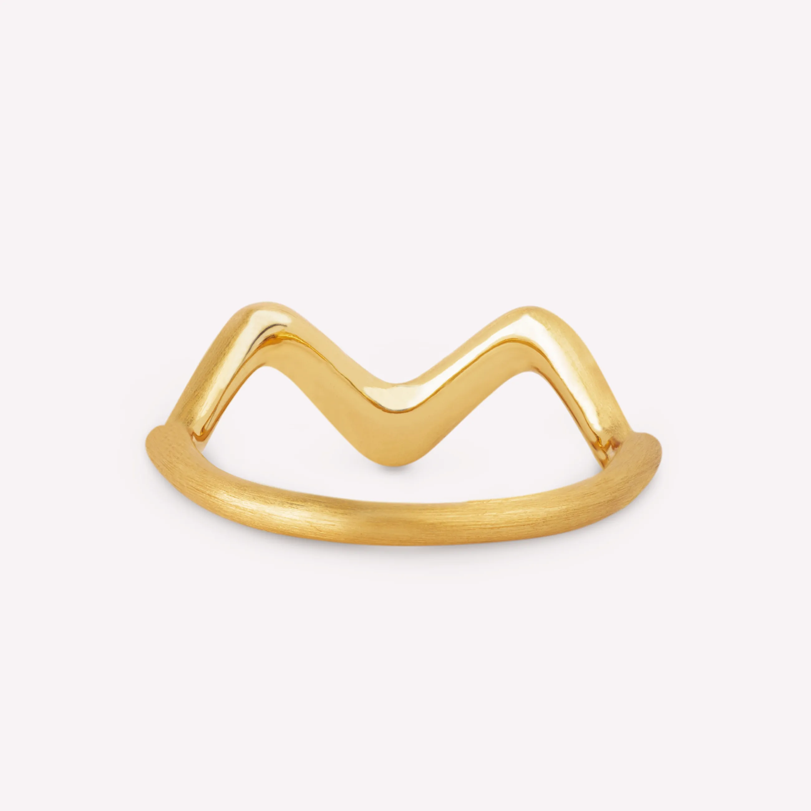 Wave ringen bevæger sig i et yndefuldt mønster, der efterligner havets bølger og giver et klassisk udtryk. Ringen er lavet i mat guld, hvilket gør looket stilet og tidsløst.
